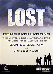 その他の結果を先に書いてしまうとコスチュームやパッチも無くサインの枚数も4枚といつもと同じ結果。違いといえばLOST: Season Sixが3枚しか出なかったことくらいです。シリアルのシールが無いからといって、特別なBOXだというわけじゃ無かったようで、落胆しながら誰のサインだったのかを確認してみると・・・。